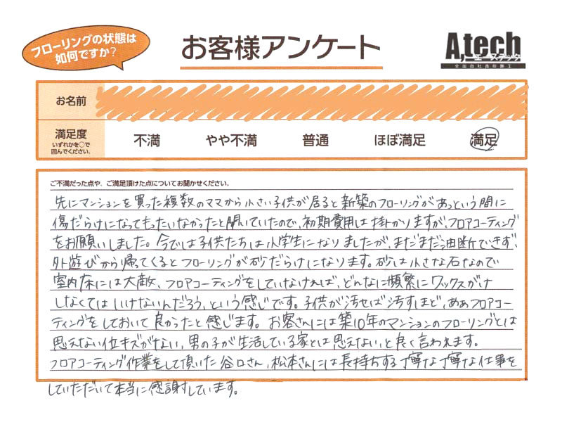 築10年を超える場合に於きましては、現状の床材を拝見させていただきます。